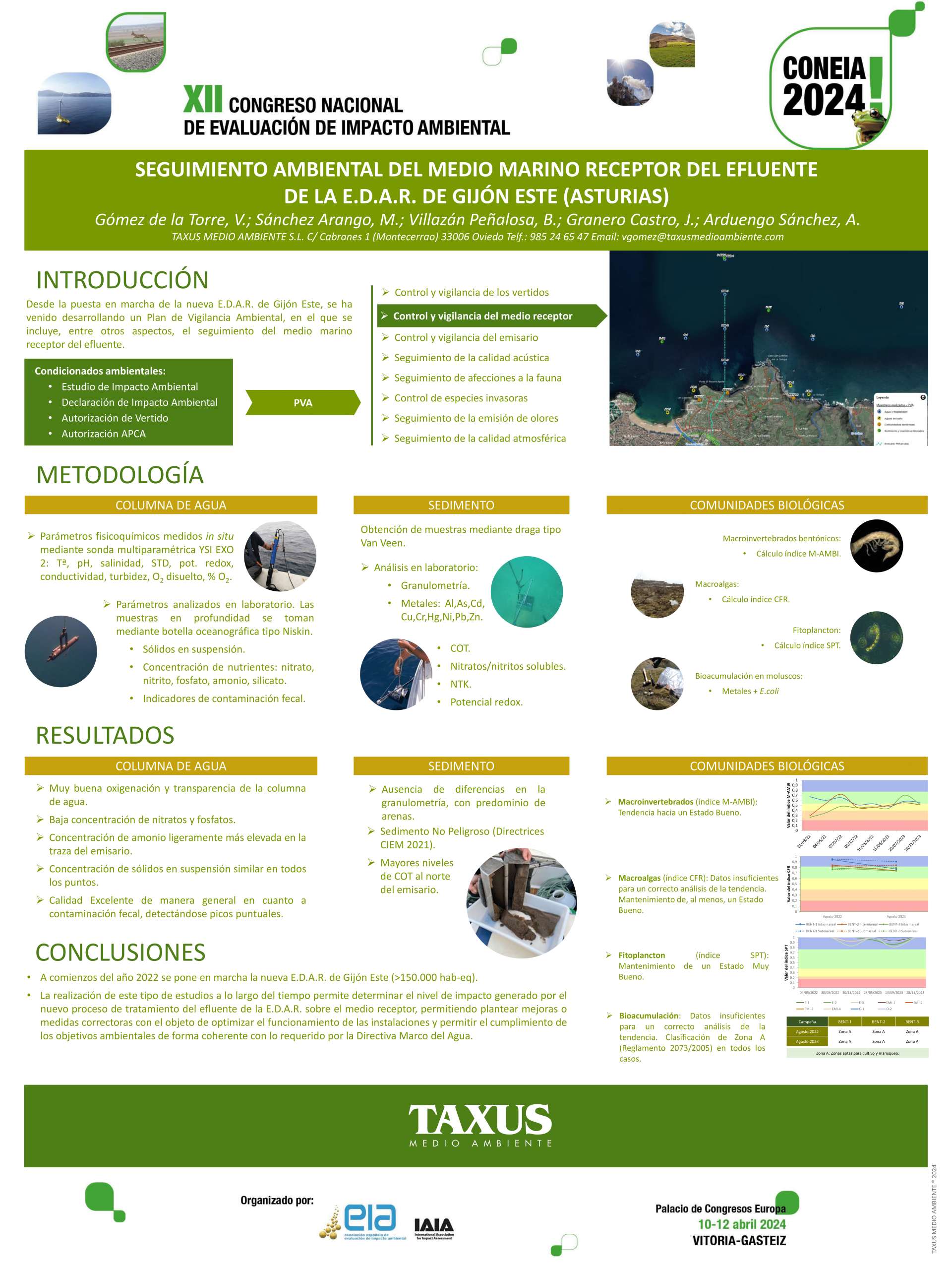 Desde la puesta en marcha de la nueva E.D.A.R. de Gijón Este, se ha venido desarrollando un Plan de Vigilancia Ambiental, en el que se incluye, entre otros aspectos, el seguimiento del medio marino receptor del efluente.